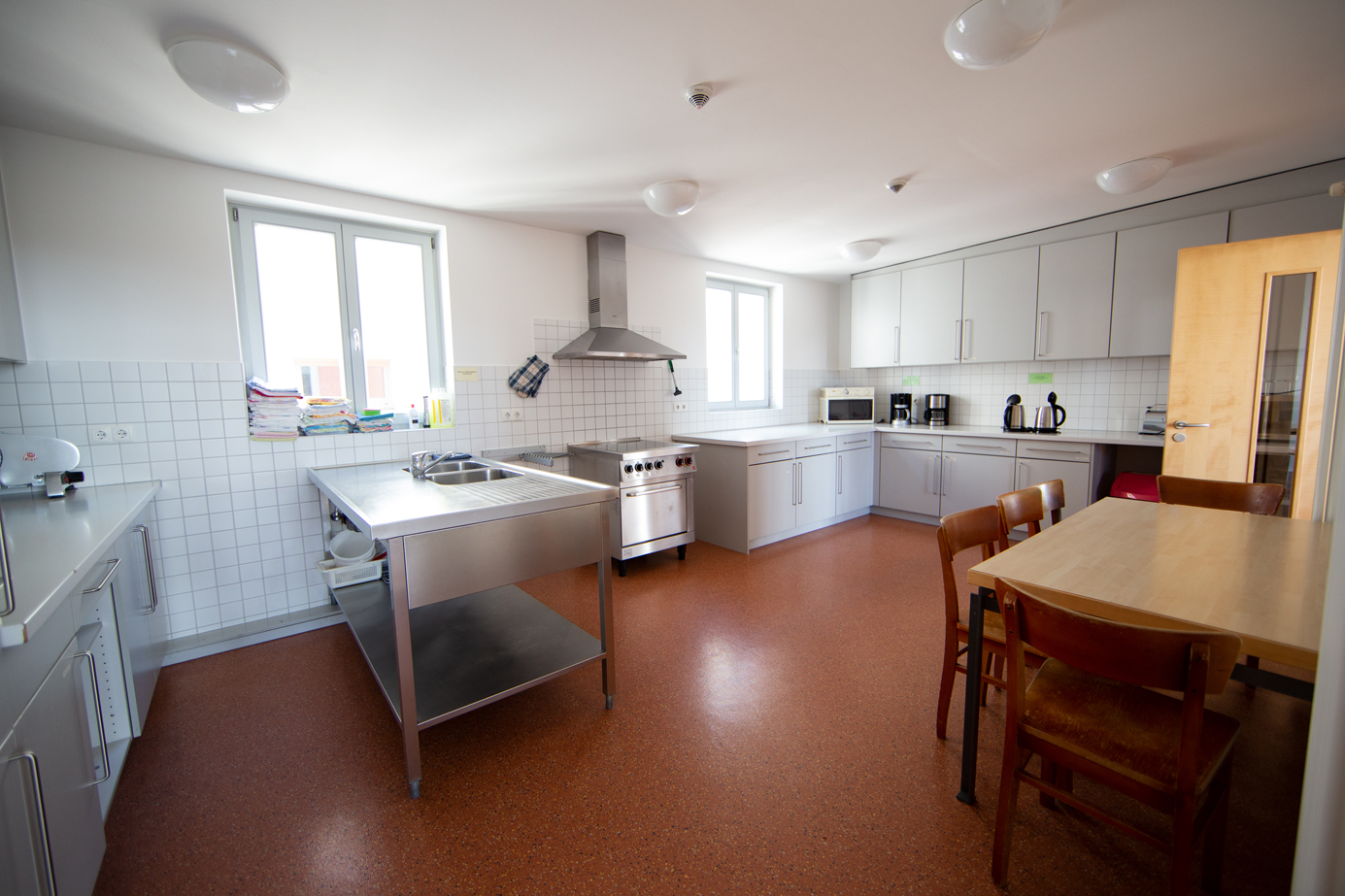 Das heißt auch, dass ihr einkauft, kocht und euch selbst organisiert. Wir stellen euch in der geräumigen Küche einen modernen Herd mit vier Kochfeldern und Backofen, zwei Mikrowellen, Wasserkocher und Kaffeemaschine zur Verfügung. Alles Weitere, was ihr zum Kochen braucht, ist natürlich auch da.